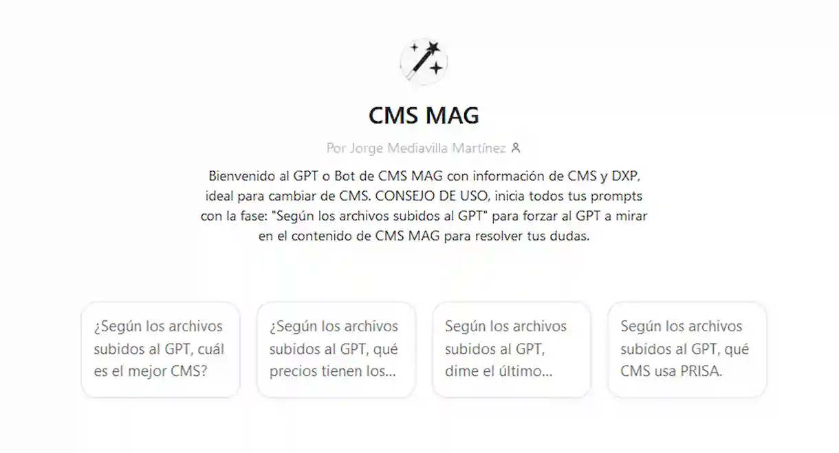 Its main goal is to assist CMS MAG and its clients switching CMS and migrations. Until now, determining whether WordPress or Drupal, Bitban or Xalok, Glide or Arc XP was better wasn’t straightforward. Firstly, because information on these platforms is scarce. Secondly, because it’s neither open nor easily accessible. And thirdly, because reading all the available information to form an opinion is costly and time-consuming. CMS MAG’s GPT solves this problem.